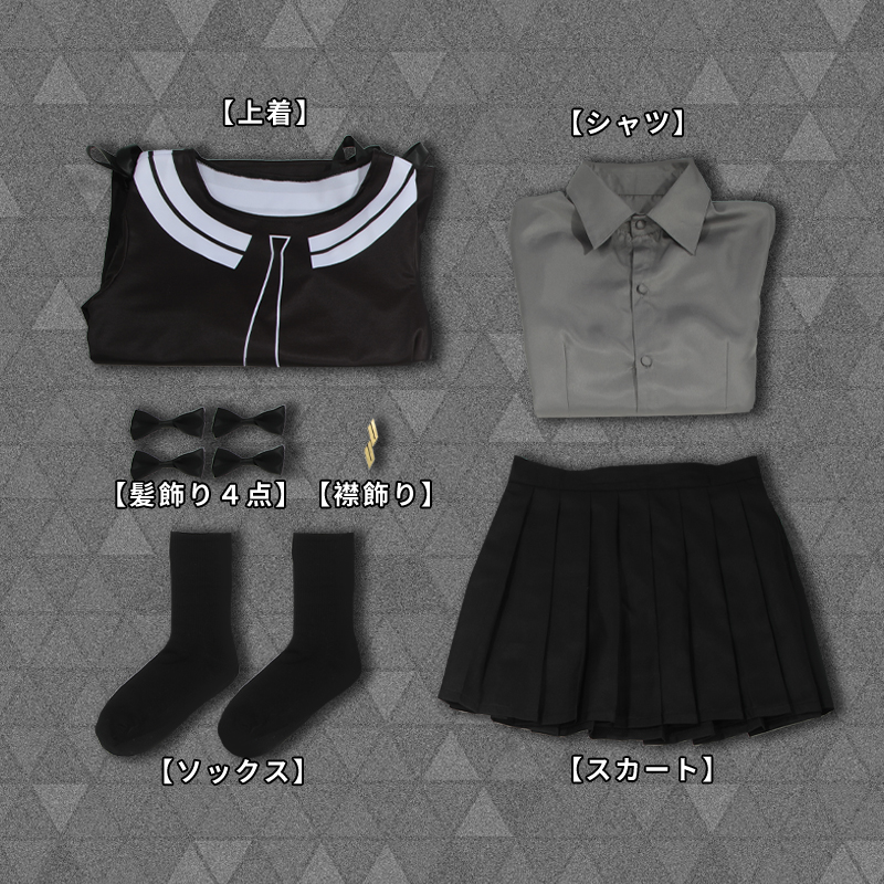 上着、シャツ、スカート、飾り物(髪飾り4点、襟飾り、ソックス)