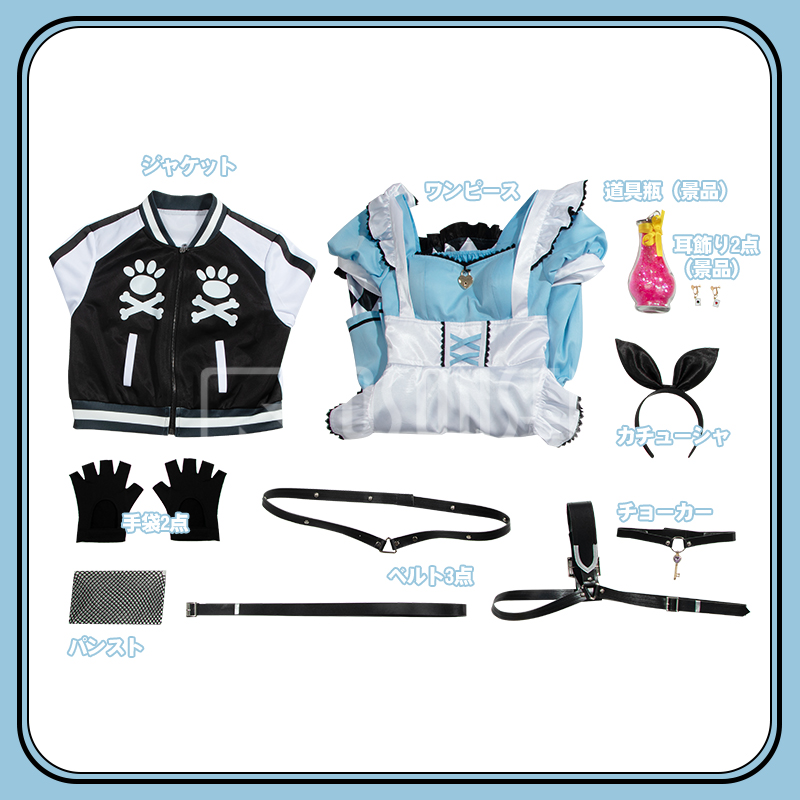 ジャケット、ワンピース、飾り物(カチューシャ、チョーカー、ベルト3点、手袋2点、パンスト)