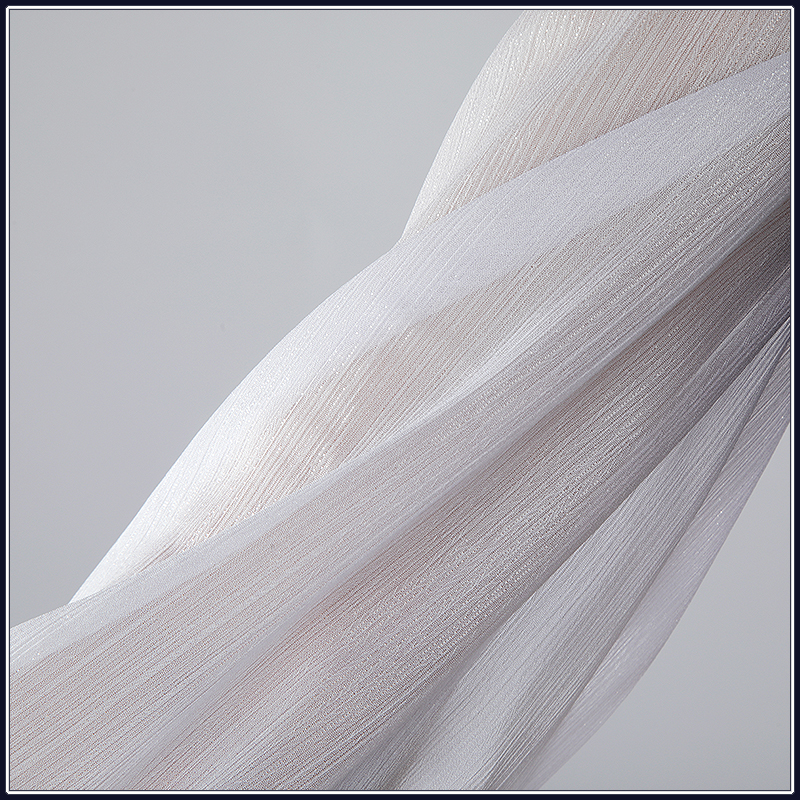 フェイクシルクで製作しています。左右の丈が異なります。ユニークなデザインで印象的です。