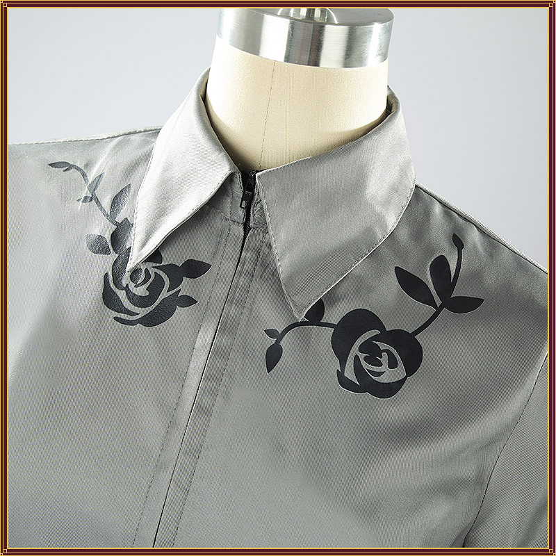 シャツ生地で製作しています。無地の半袖シャツです。正面に薔薇の絵柄がプリントされて綺麗に見えます。