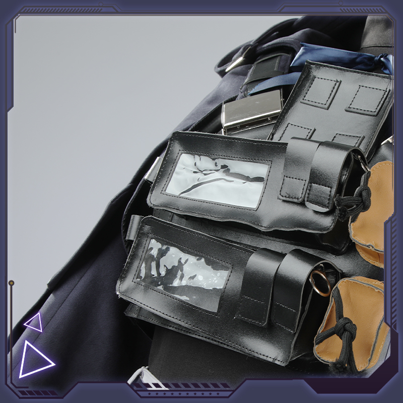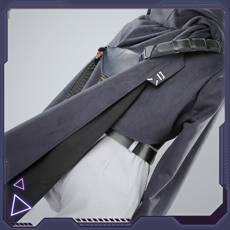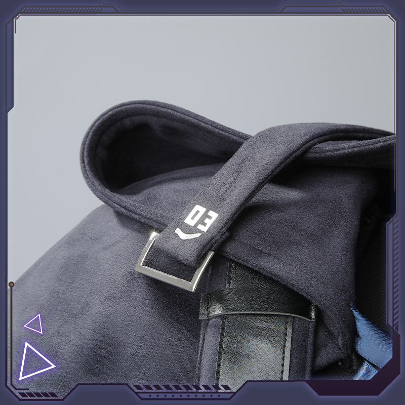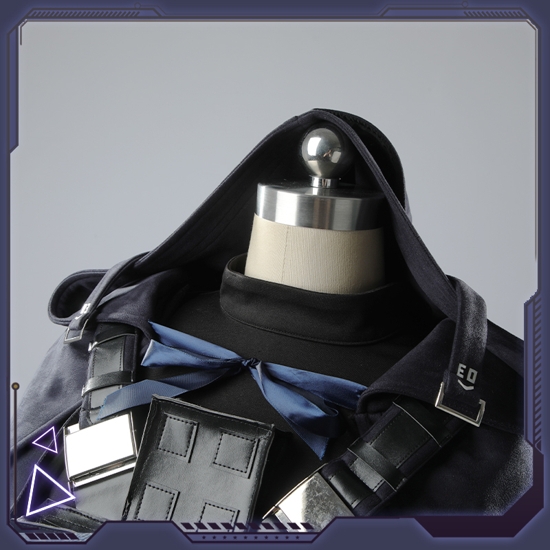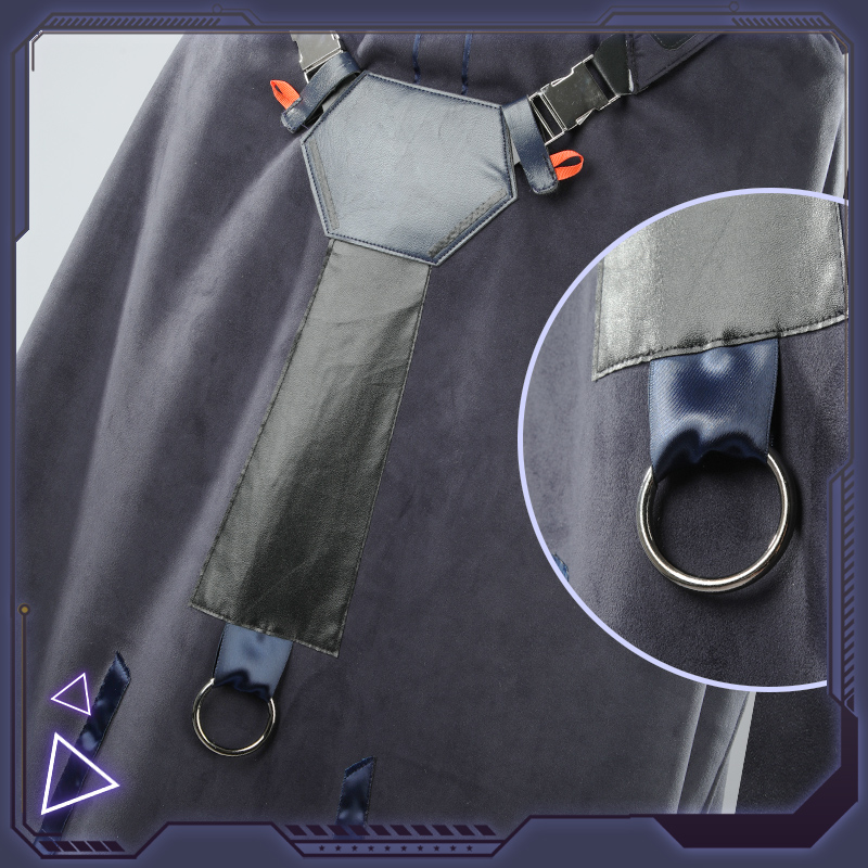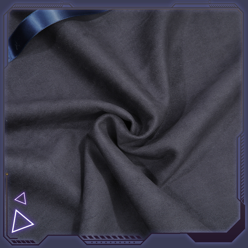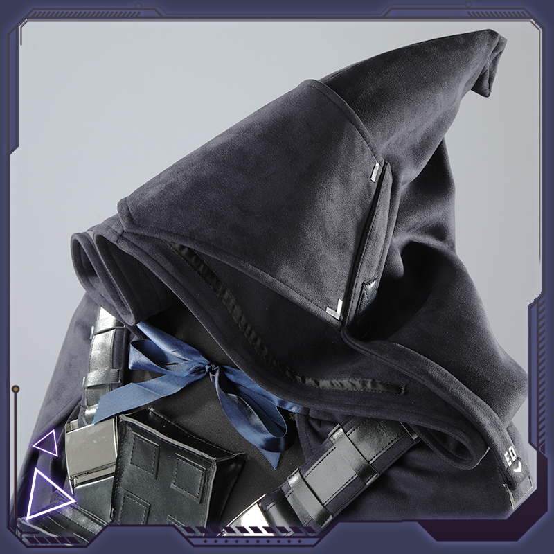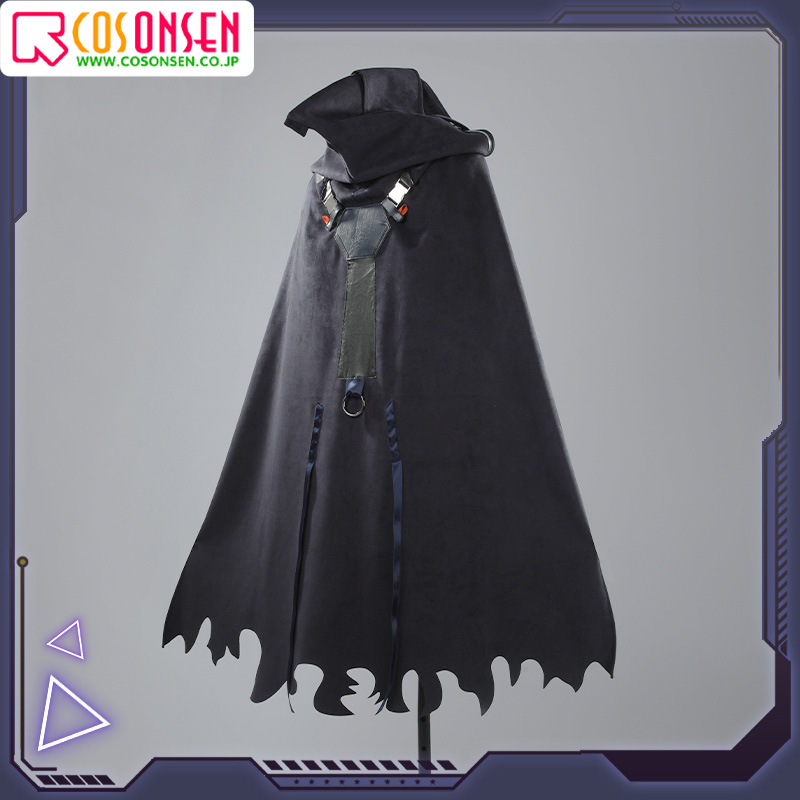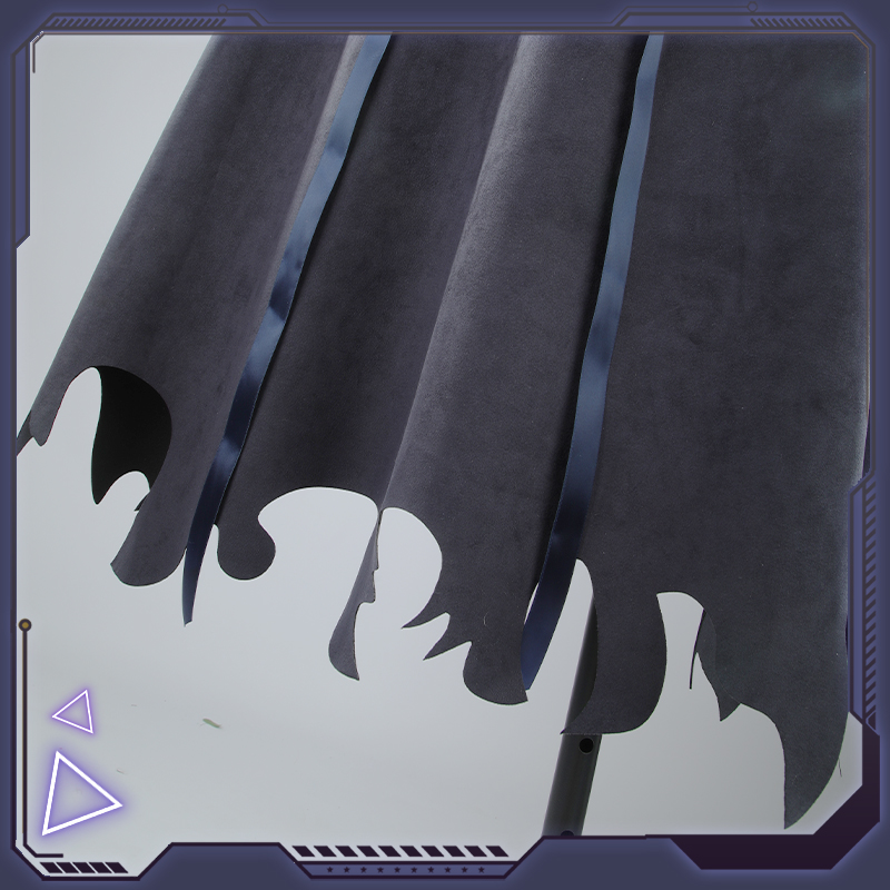 スエード生地で製作しています。黒を基調として、フード付きのマントで、炎のような裾があってかっこいいです。