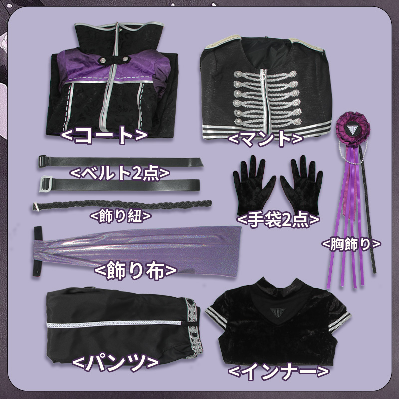 マント、コート、インナー、パンツ、飾り物(胸飾り、飾り紐、手袋2点、ベルト2点、飾り布)