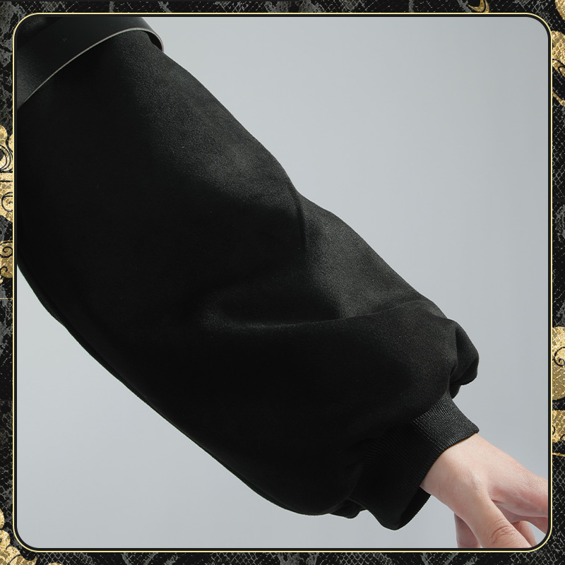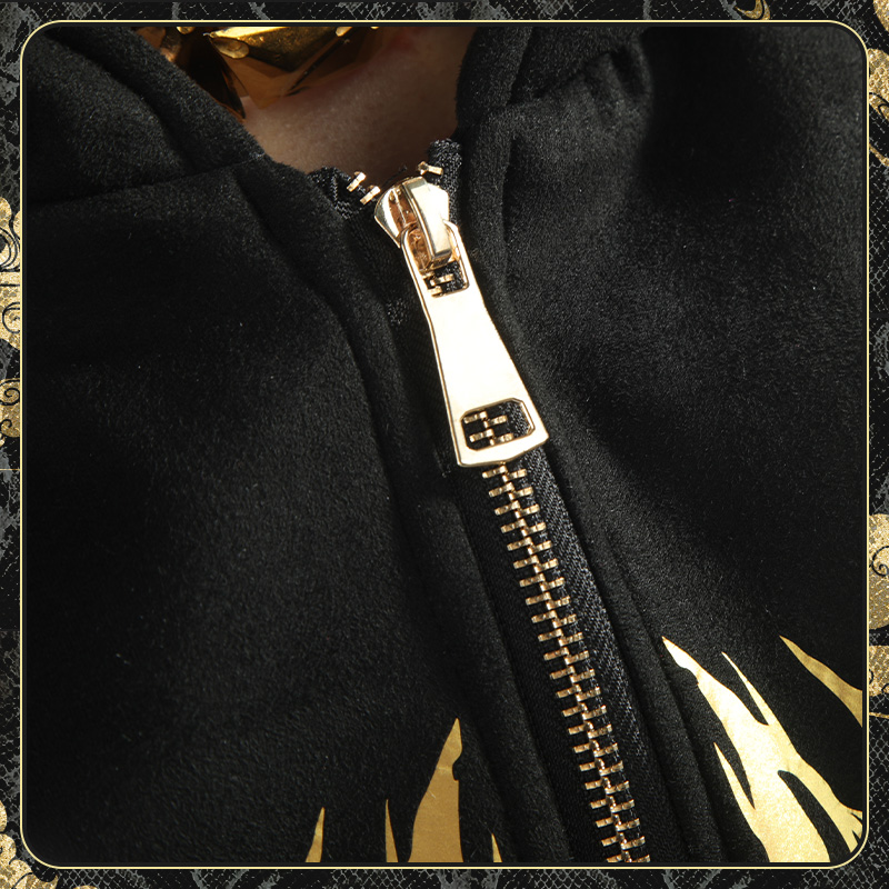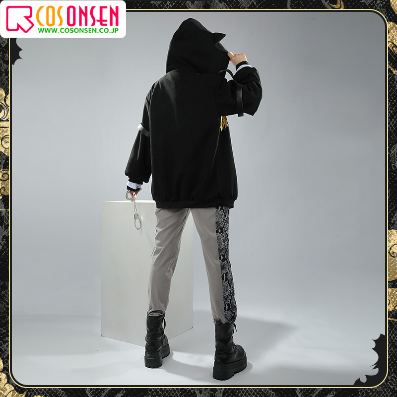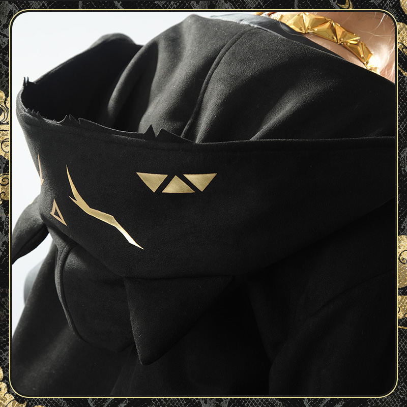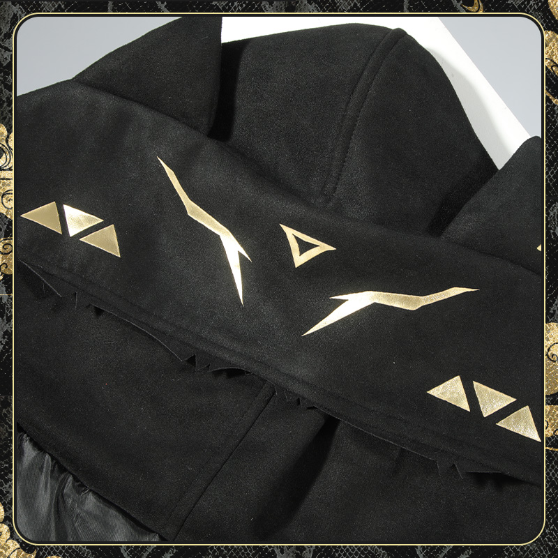 スエード生地で製作しています。黒を基調として、フードに可愛い耳が施されて再現度が高いです。