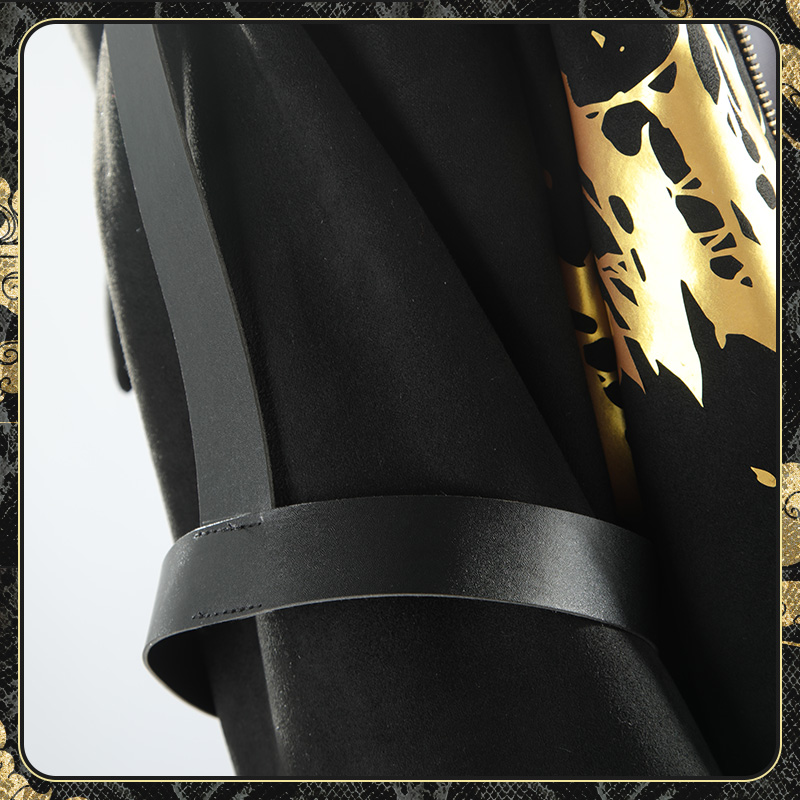 キャバルリツィルで製作しています。両側に原作に忠実な絵柄がプリントされてかっこいいです。