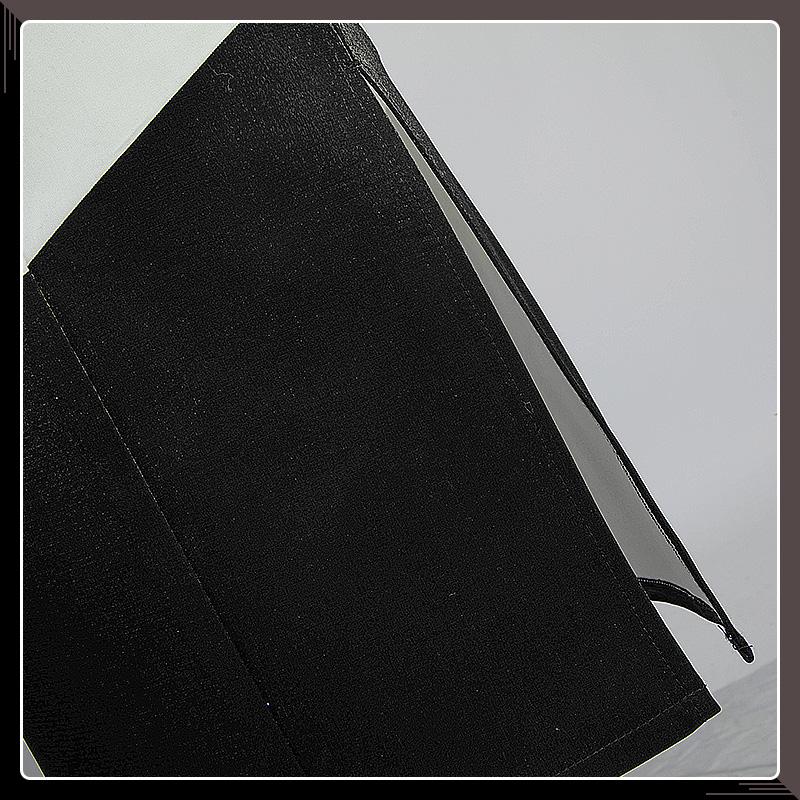 クールコットンで製作しています。白と黒を組み合わせるタイトスカートです。右側にチャックが付いて脱着が便利です。