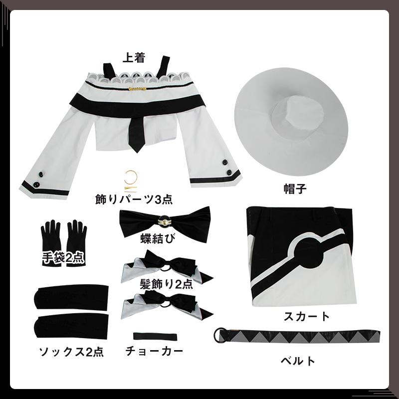 上着、スカート、飾り物(帽子、蝶結び、髪飾り2点、チョーカー、手袋2点、飾りパーツ3点、ベルト、ソックス2点)