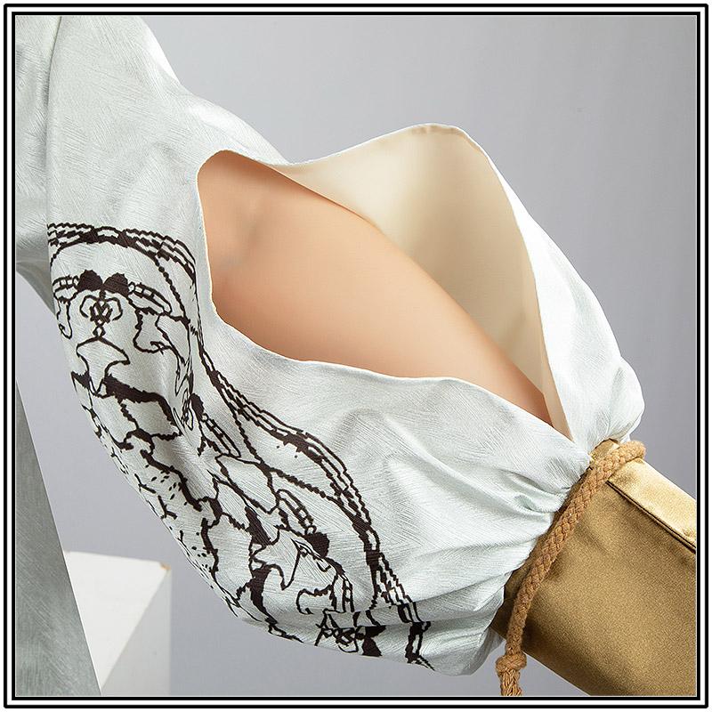 ヘリンボーンで製作しています。襟と両袖と後ろに綺麗な絵柄がプリントされて再現度が高いです。
