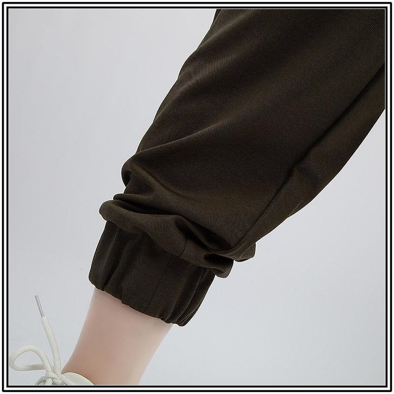 ニット生地で製作しています。運動しやすいクロップドパンツです。両サイドに本物のポケットが施されて便利です。