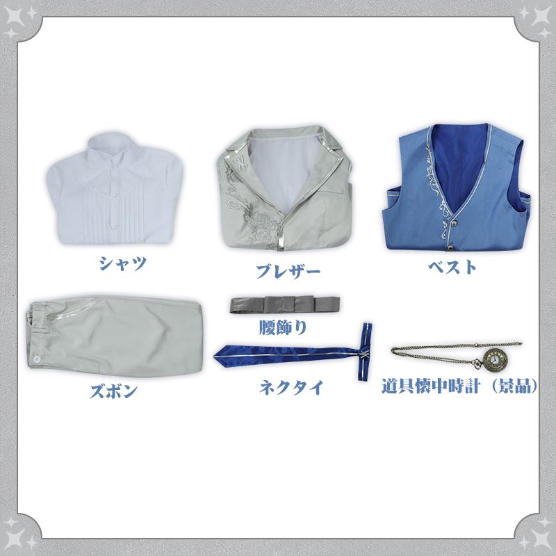 ブレザー、ベスト、シャツ、ズボン、飾り物(ネクタイ、腰飾り)