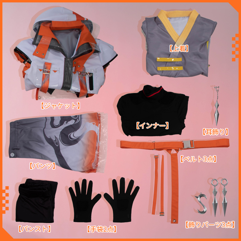 ジャケット、上着、インナー、パンツ、飾り物(耳飾り、手袋2点、ベルト3点、パンスト、飾りパーツ3点)