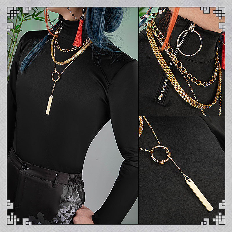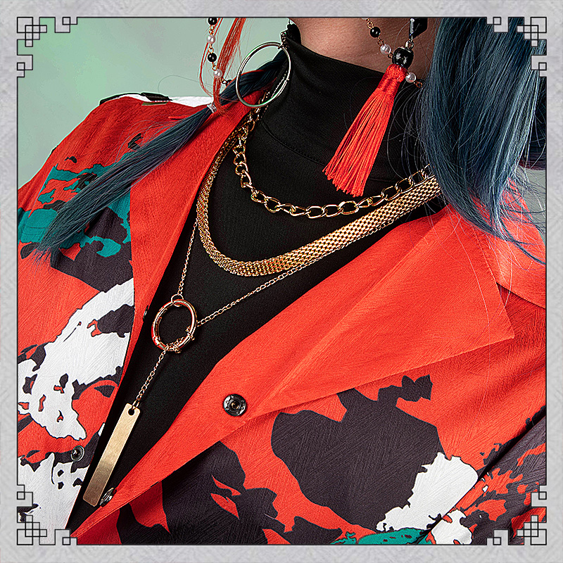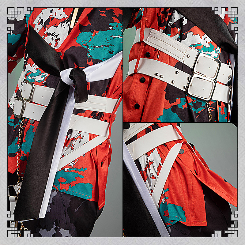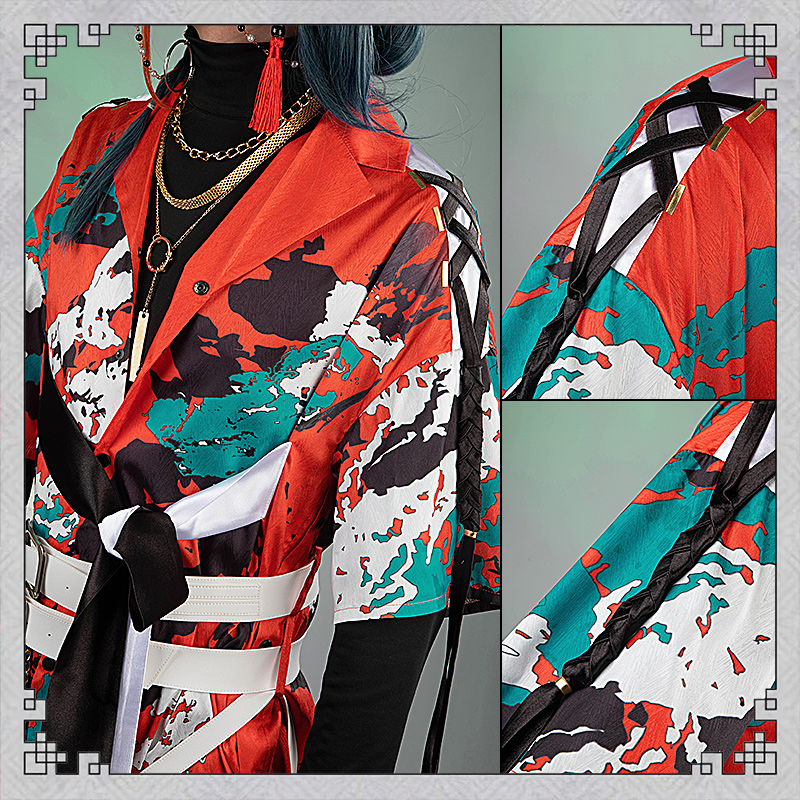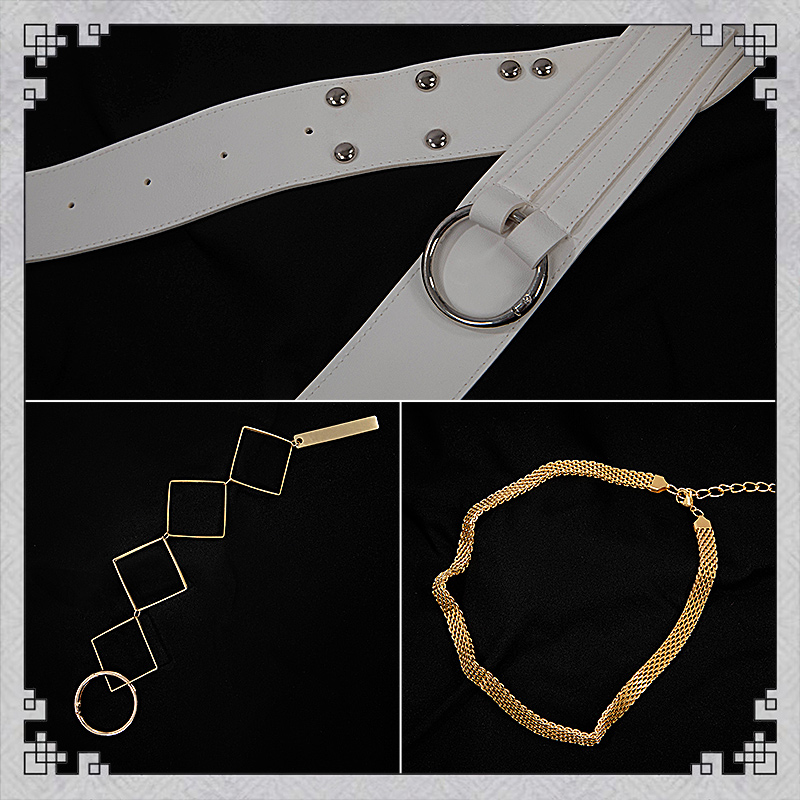 コート、シャツ、インナー、パンツ、飾り物(耳飾り、ネックレス3点、飾りパーツ、腰飾り、ベルト3点、レッグカバー2点)