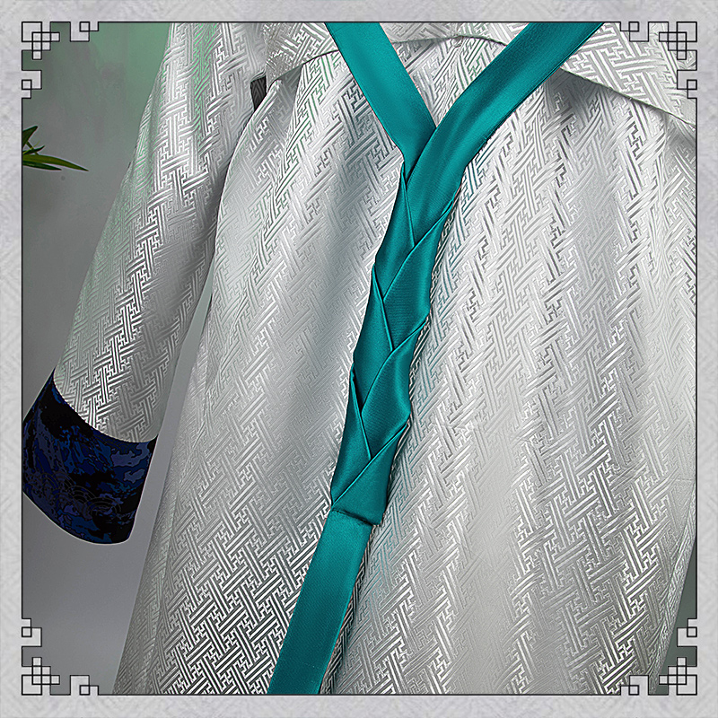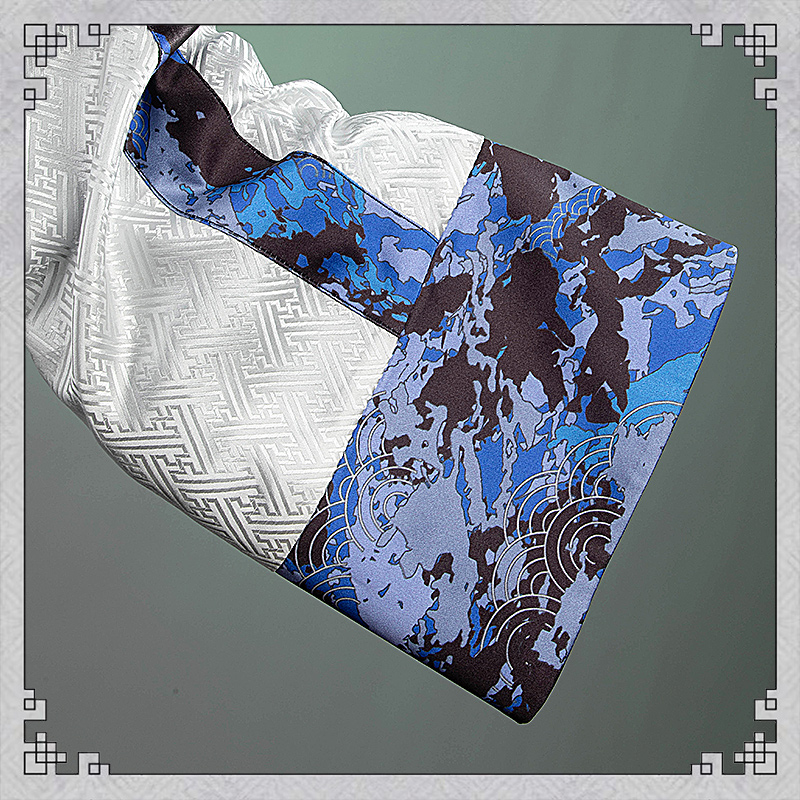 主にジャガード生地で製作しています。白を基調として、丈夫な素材を使って実用性が高いです。袖口に和風の柄がプリントされて綺麗に見えます。
