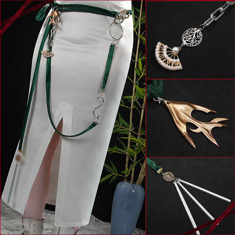 コート、インナー、スカート、飾り物(耳飾り、腰飾り4点、ネックレス、飾りパーツ)