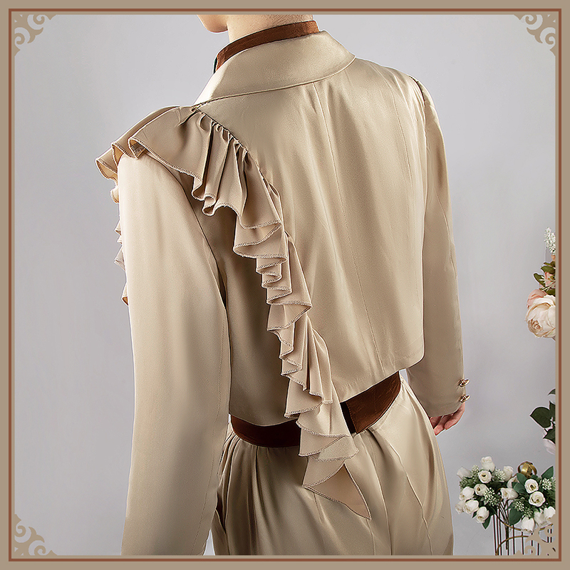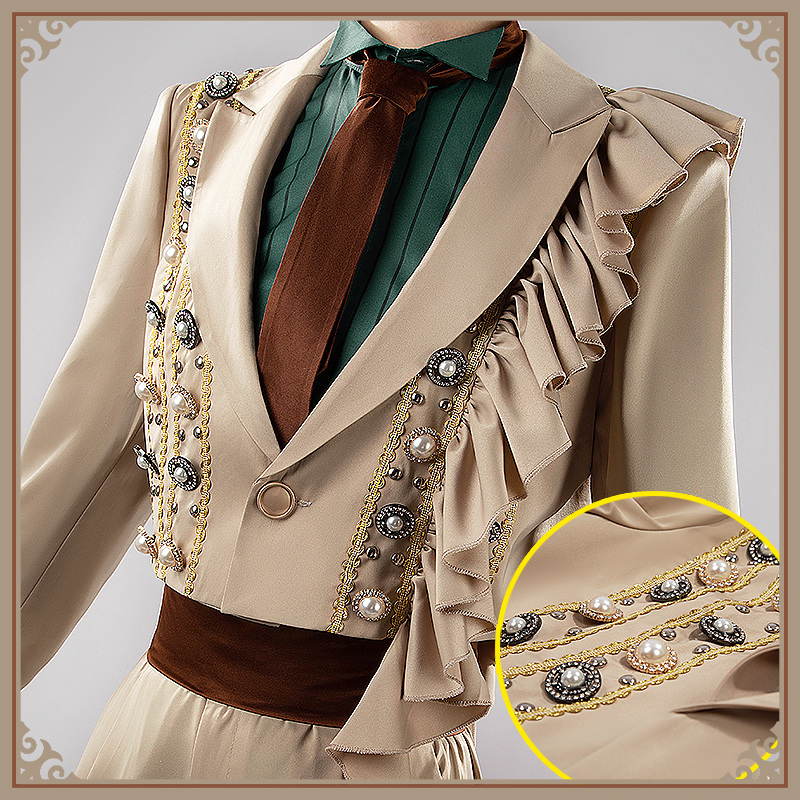 ウォールサテンで制作しています。胸に原作風の飾りを縫い付けて再現度が高いです。