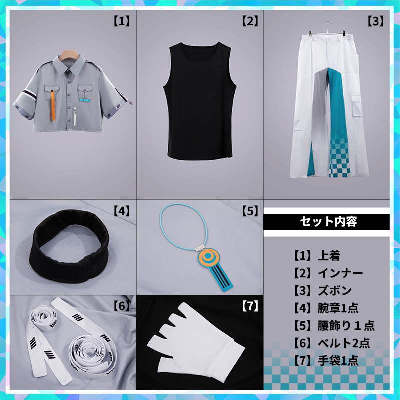 上着、インナー、ズボン、飾り物(腕章1点、手袋1点、腰飾り1点、ベルト2点)