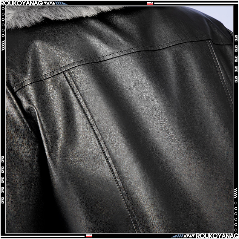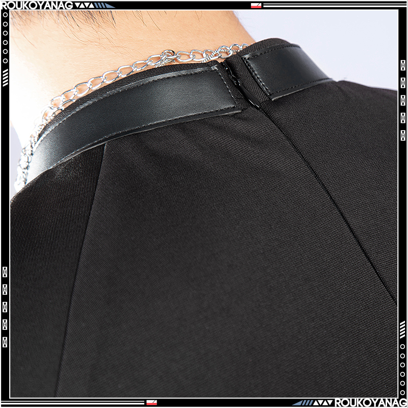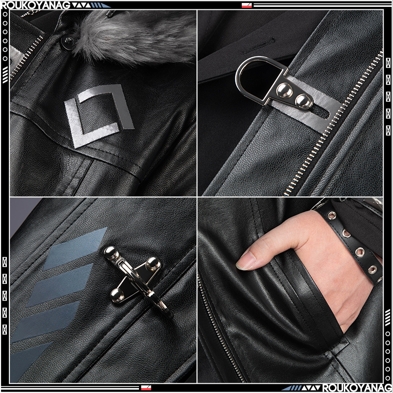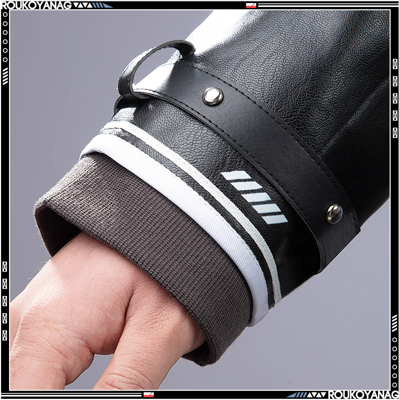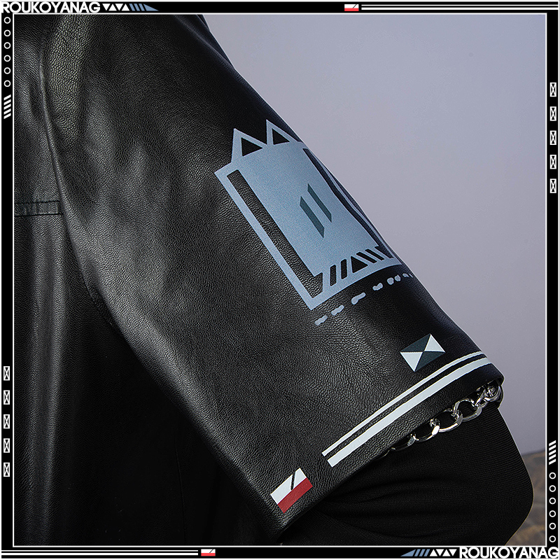 合皮で製作しています。黒を基調として、非対称の袖でファッション感があります。