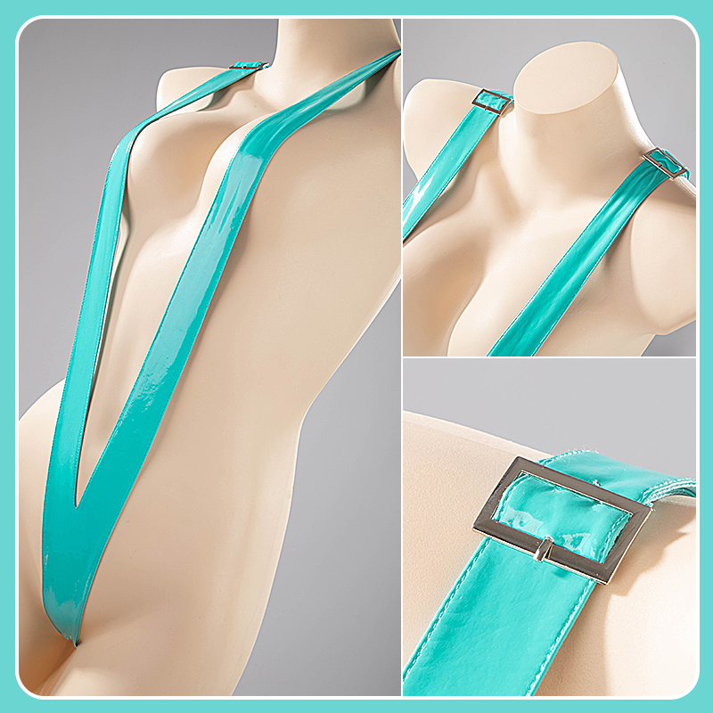 合皮で製作しています。大胆なV字デザインになっており、長さは自由に調節可能です。