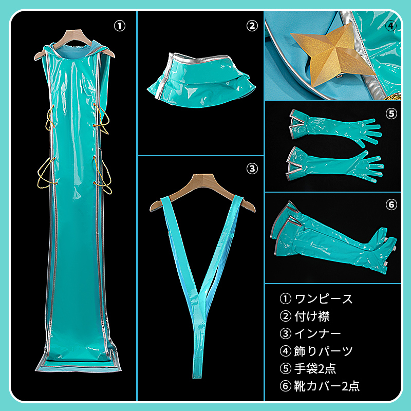 ワンピース、インナー 、飾り物(付け襟、飾りパーツ、手袋2点、靴カバー2点)