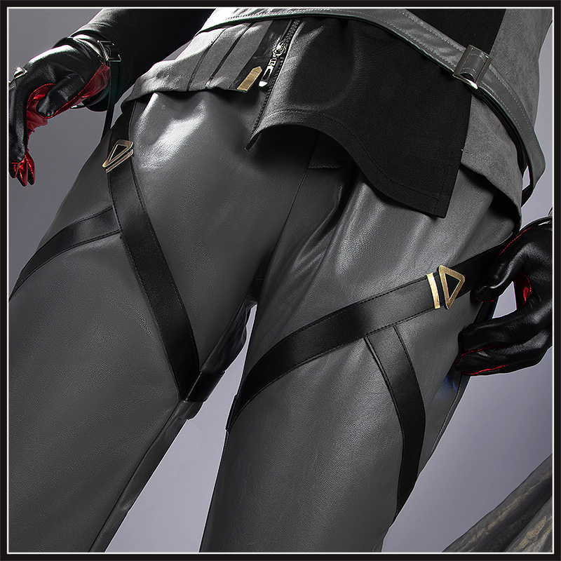 合皮で製作しています。無地のパンツで普段にも着られます。