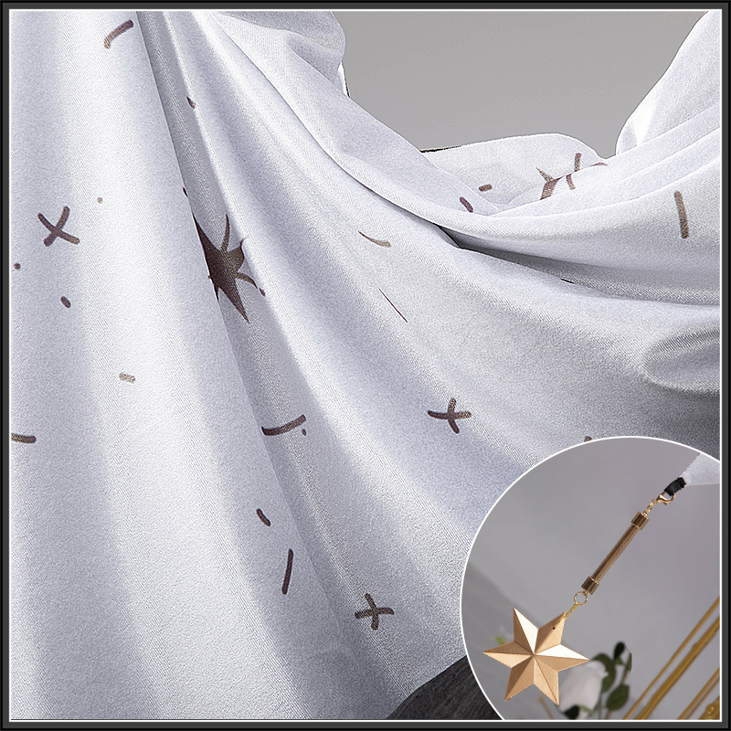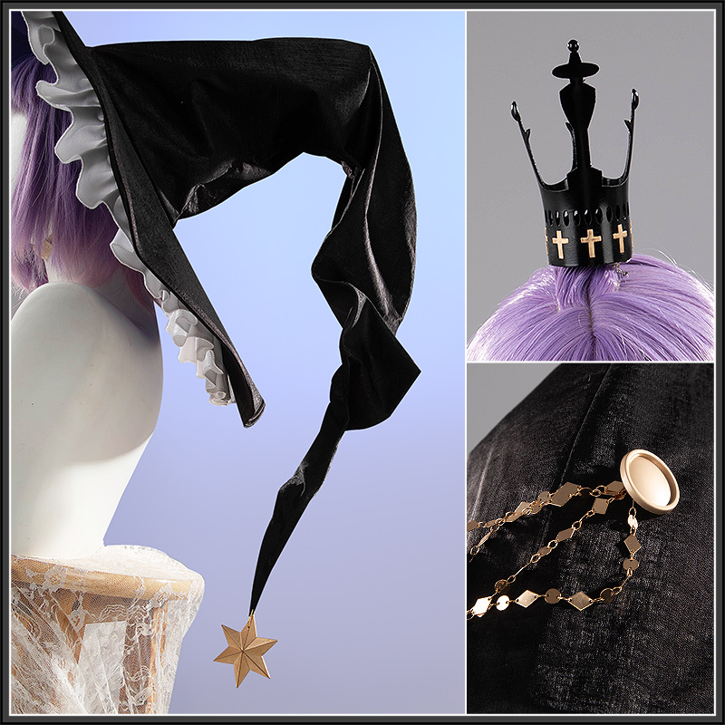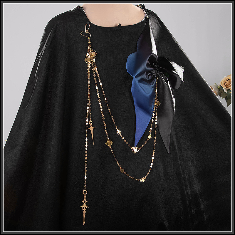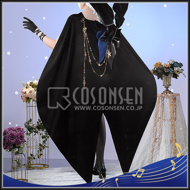 コットンベルベットとポリエステルで製作しています。マントの外側は黒です、裏地に星の絵柄がプリントされて、再現度が高いです。
