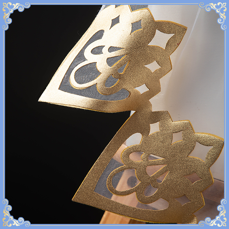 ポリエステルで製作しています。軽やかな素材で作られ、繊細な透け感が美しさを引き立てています。