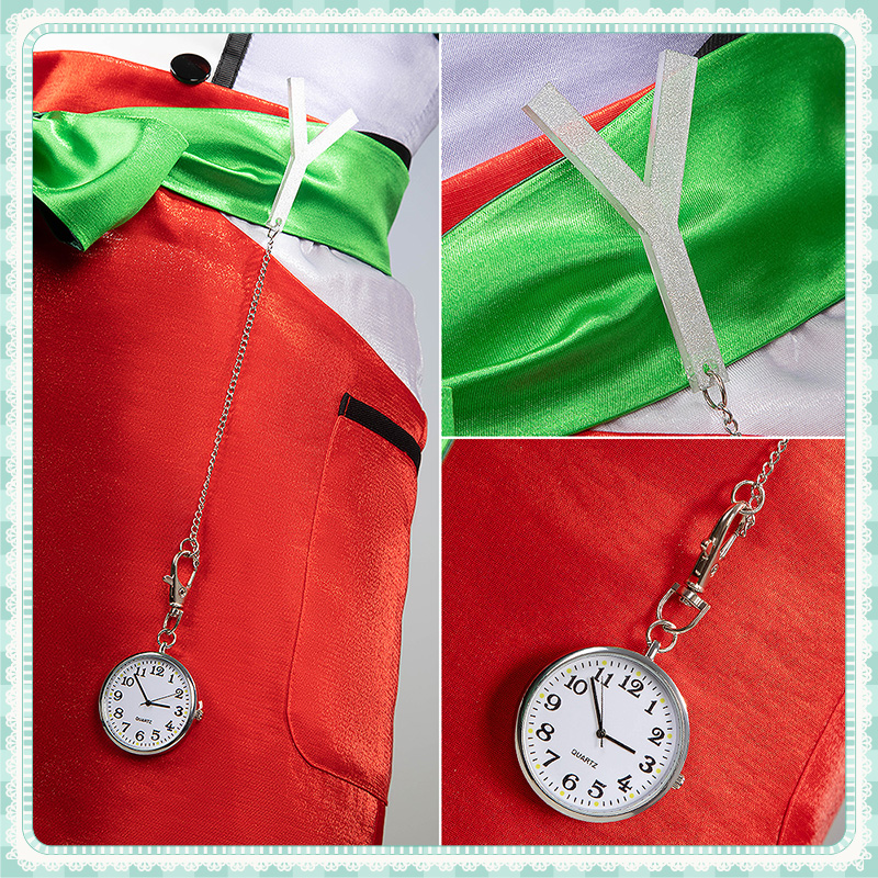上着、腰布、パンツ、ハーフエプロン、飾り物(帽子、髪飾り3点、リボン、懷中時計、腕飾り2点、腰飾り、パンスト)