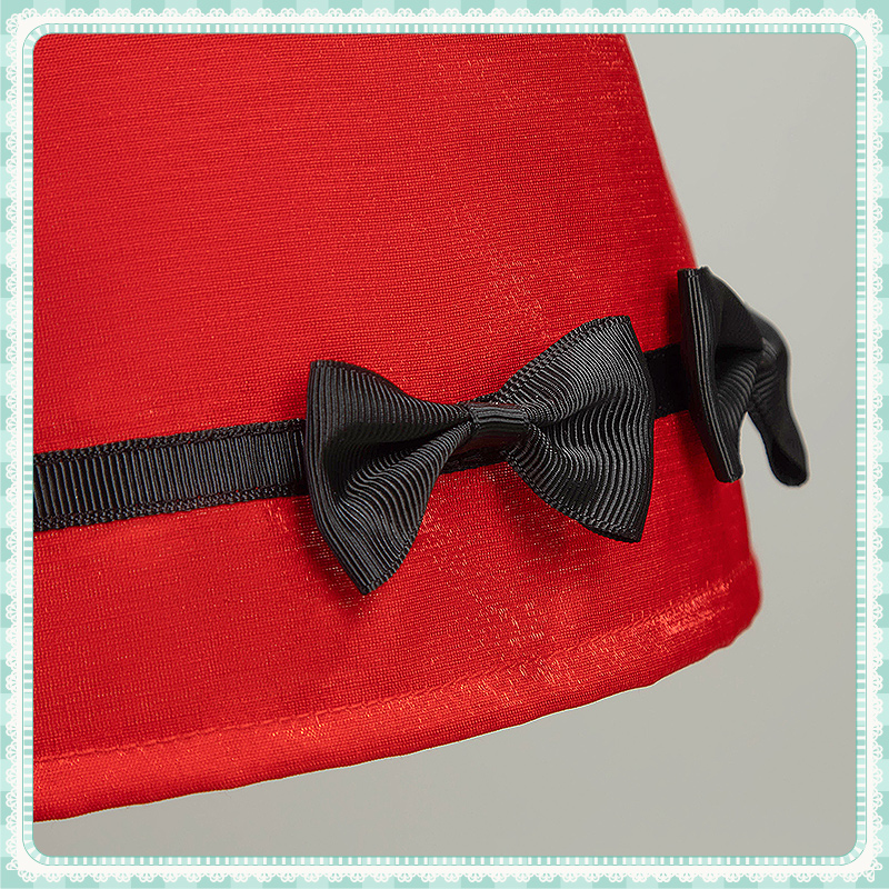 光沢布で製作しています。鮮やかな赤を基調に、両側に白があしらわれ、黒の縁取りでエレガントに仕上げられ。