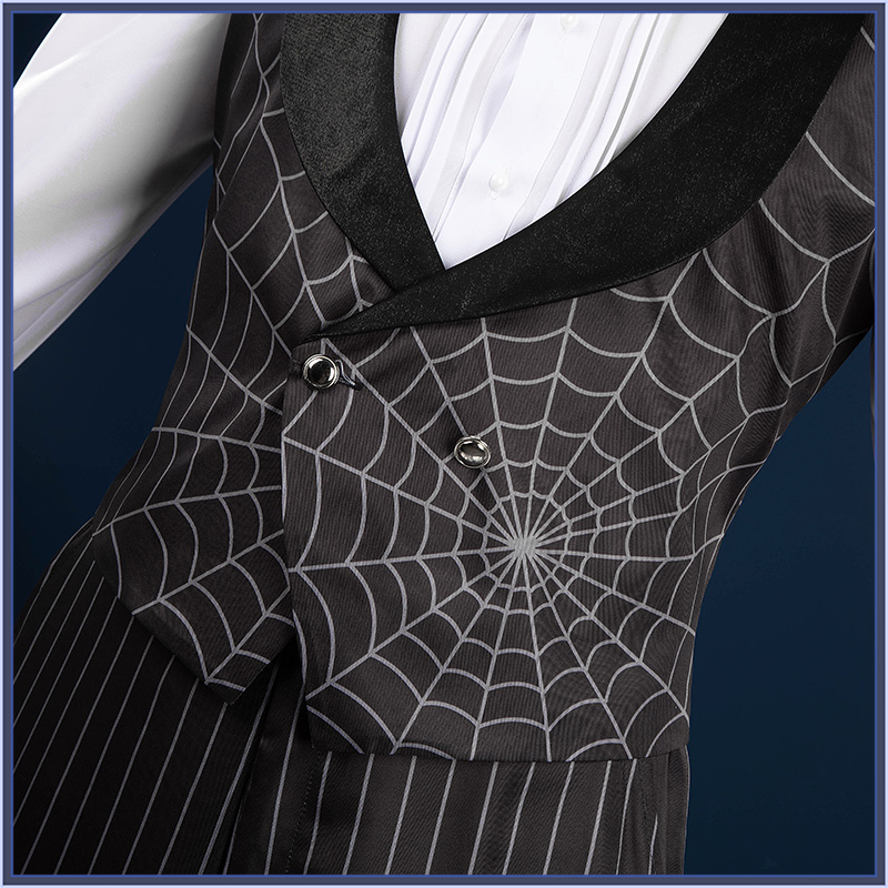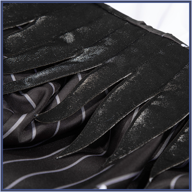 ポリエステルギャバで製作しています。襟には骸骨模様がデザインされており、そのデザインが作品を忠実に再現し、かっこよく見えます。