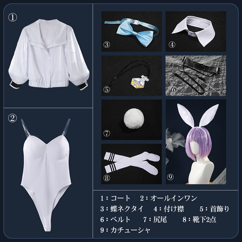 コート、オールインワン、飾り物(カチューシャ、付け襟、蝶ネクタイ、首飾り、ベルト、尻尾、靴下2点)