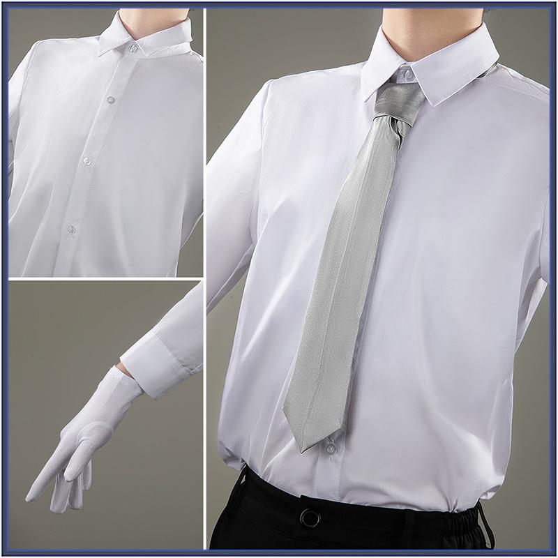 コート、シャツ、パンツ、手袋2点、飾り物(ネクタイ、胸飾り)