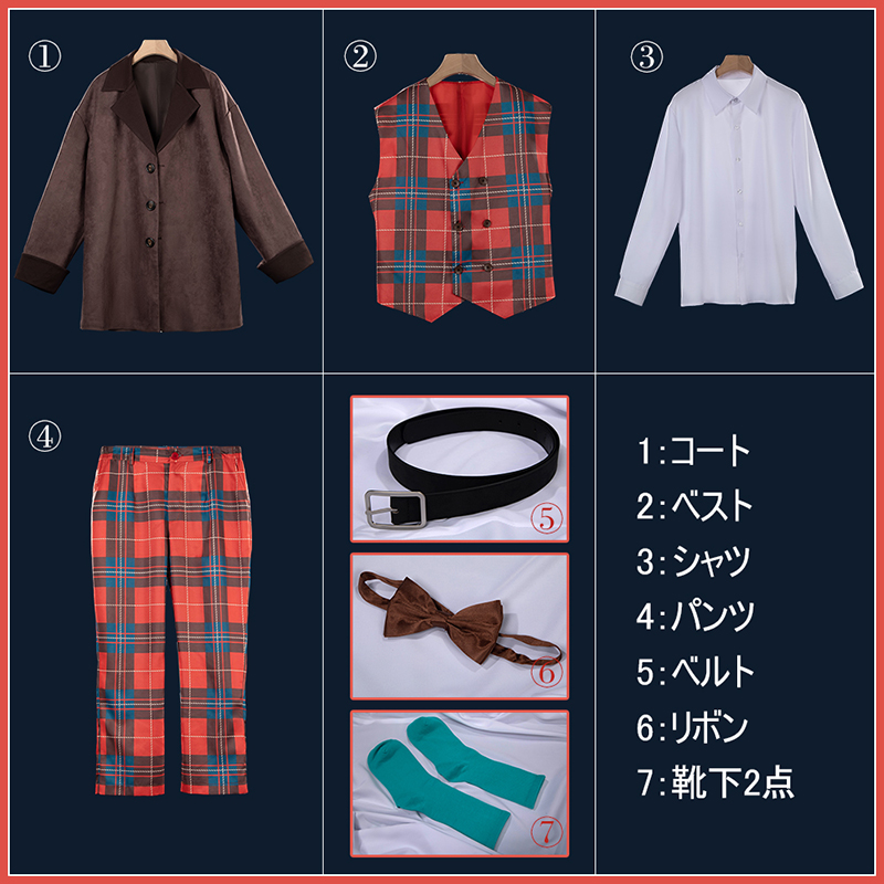 コート、ベスト、シャツ、パンツ、飾り物(ベルト、リボン、靴下2点)