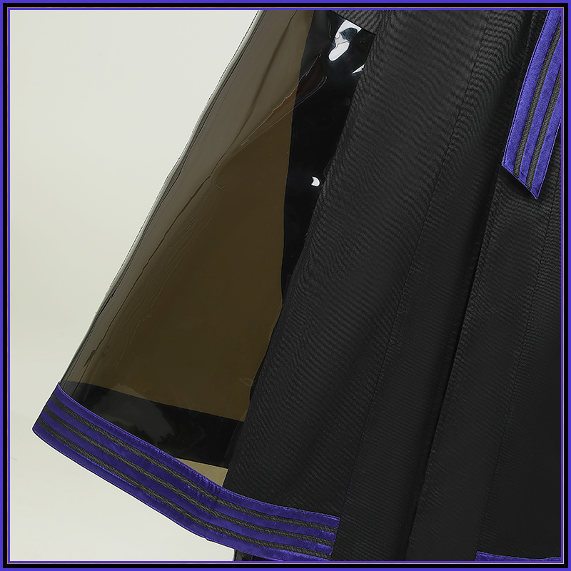 主にポリエステルとTPU生地で製作しています。長いコートの両側に透明なTPU生地を使って再現度が高いです。優れた耐久性を兼ね備え、細部にわたる緻密な職人技が際立っています。