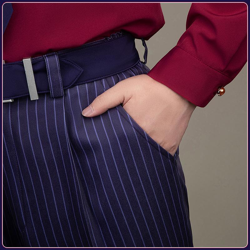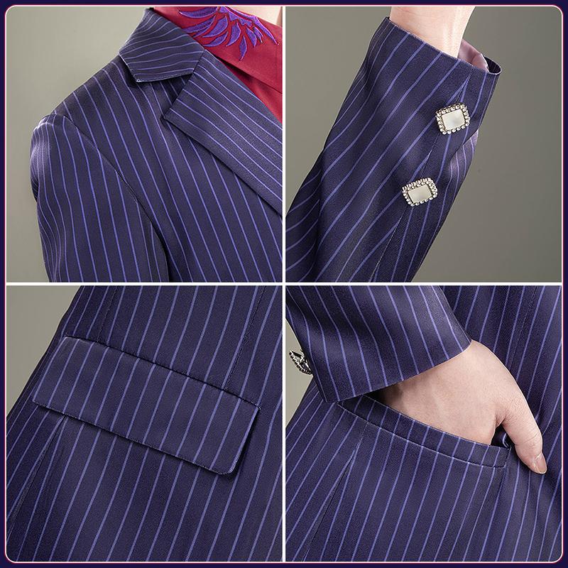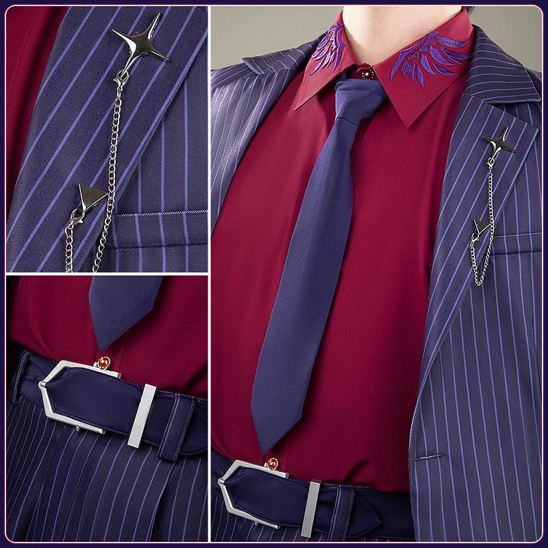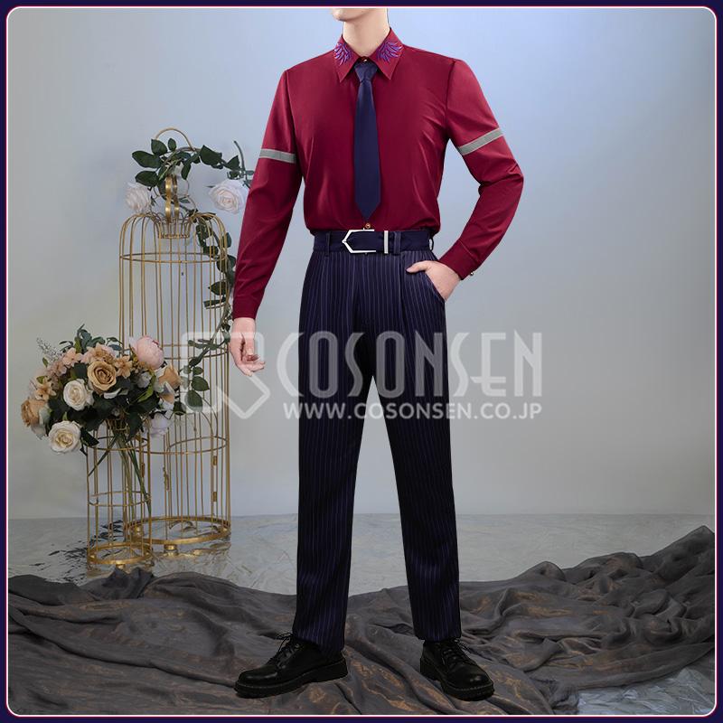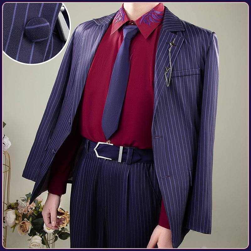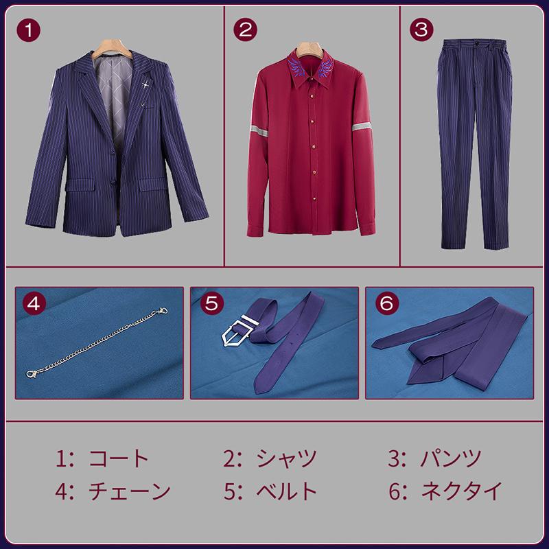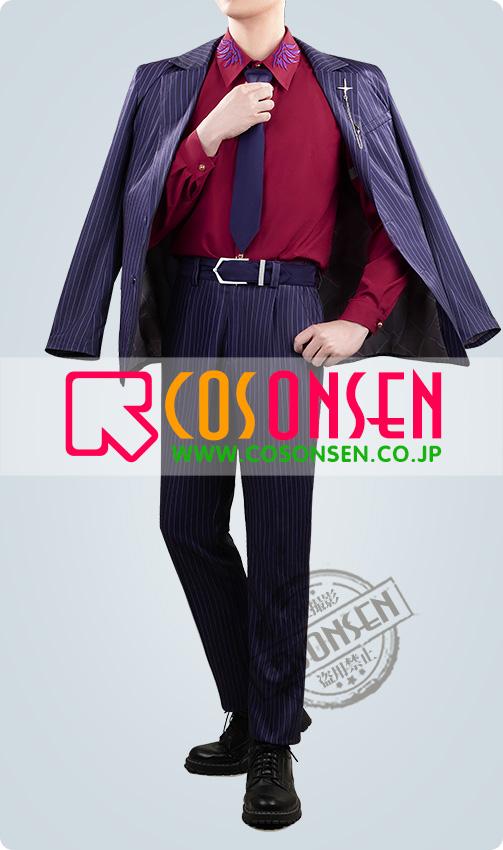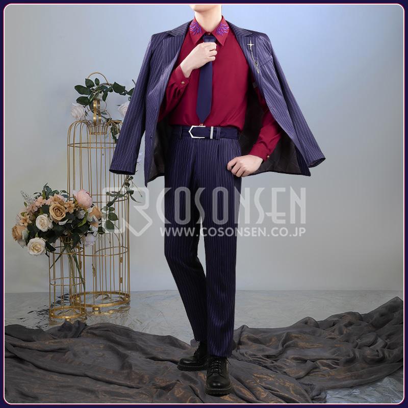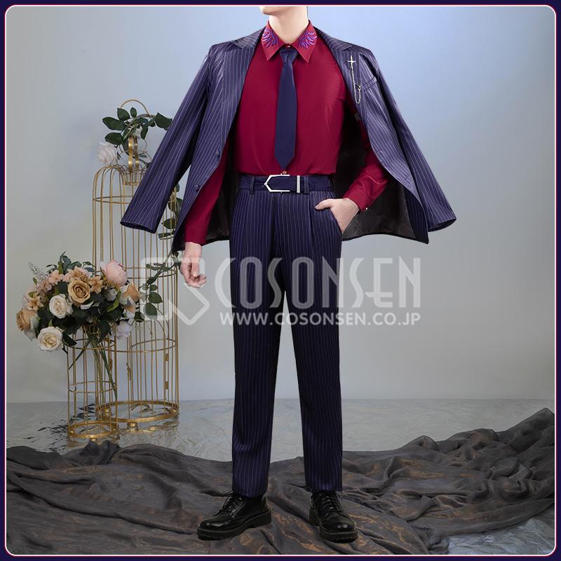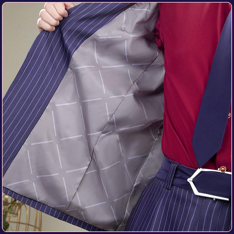 ポリエステルで製作しています。上質なスーツ生地に原作に忠実な縦ストライプがにプリントされて、とてもファンッションです。両袖に厳選されたボタンがついて、上品で高級な印象を与えています。