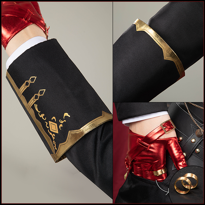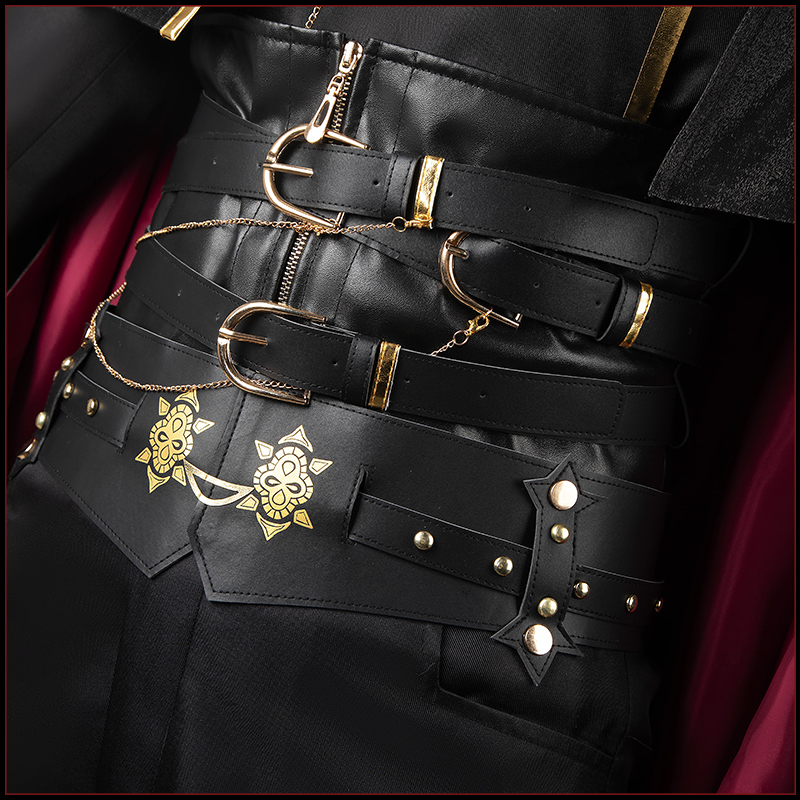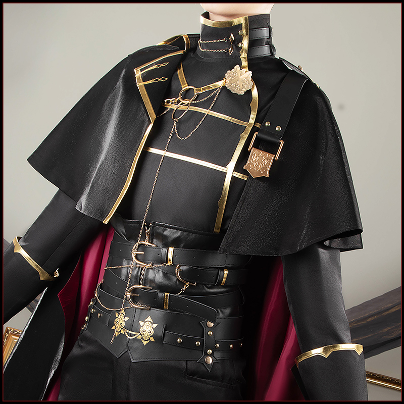 マント、コート、シャツ、パンツ、飾り物(胸飾り2点、手袋2点、腰布、ウエストチェーン、ベルト4点、腿飾り、帽子)