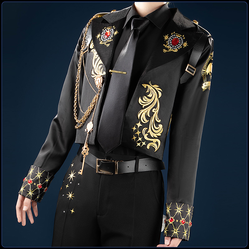 コート、シャツ、パンツ、飾り物(サスペンダー、ネクタイ、ネクタイピン、ベルト、飾りパーツ2点)