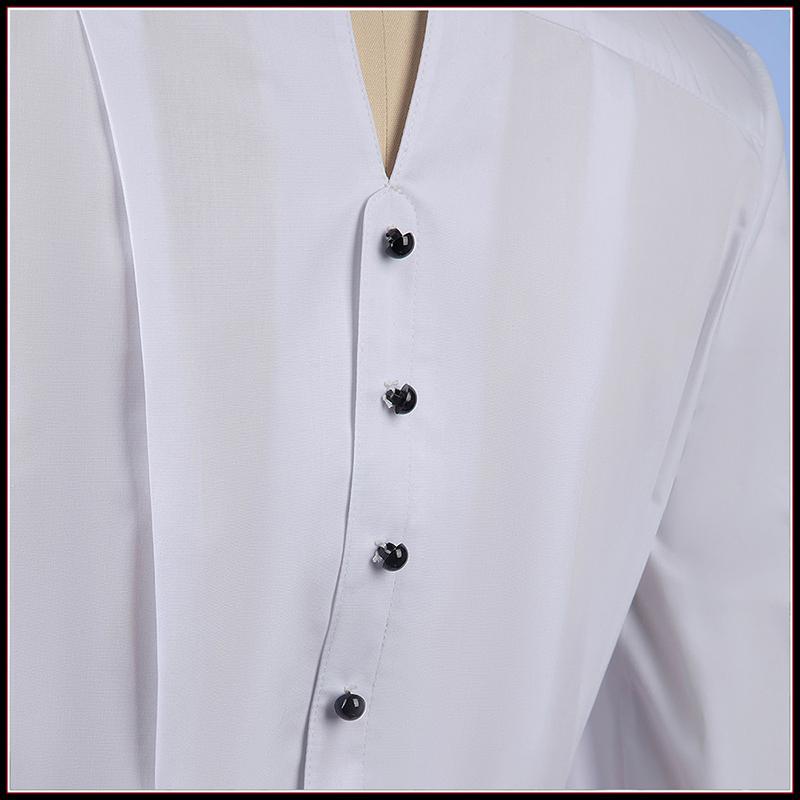 光沢サテンで製作しています。水のような光沢があるサテン生地です。フロントに金属製のダブルボタン、周りに黒い合皮ラインが施されて、お洒落なデザインです。原作に忠実な3d飾りパーツに煌びやかな宝石が飾ってあり、高級感が漂ってます。