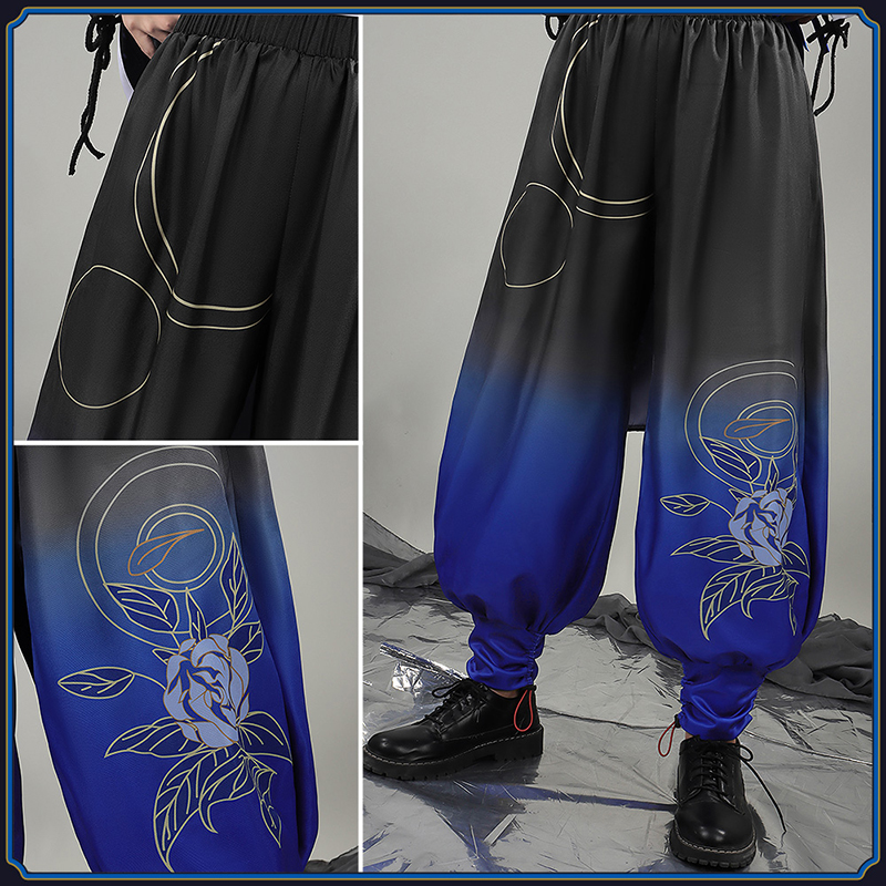 ポリエステルギャバで製作しています。通気性が伸縮性がいい生地です。両側に原作に忠実な柄が施されて綺麗に見えます。