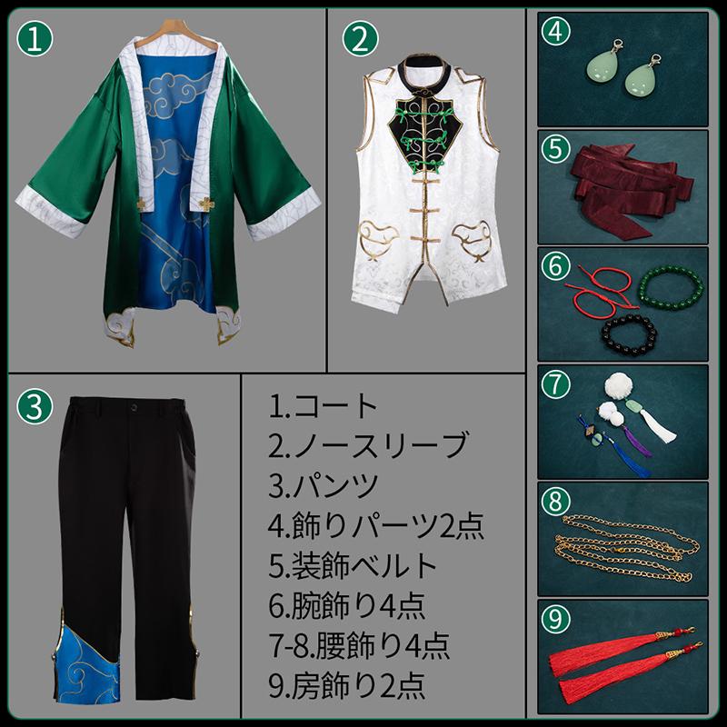 コート、ノースリーブ、パンツ、飾り物(飾りパーツ2点、装飾ベルト、腕飾り4点、腰飾り4点、房飾り2点)