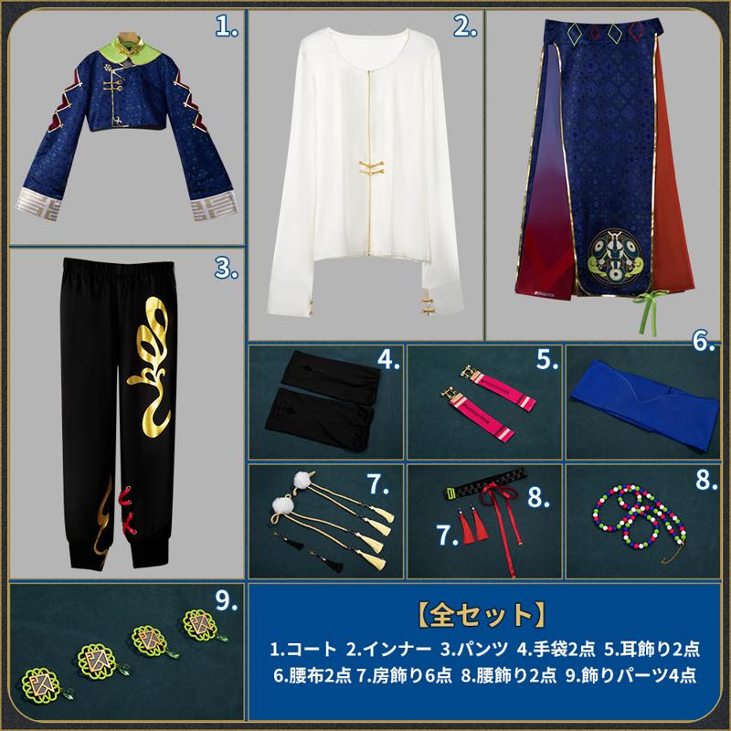 コート、インナー、パンツ、飾り物(手袋2点、耳飾り2点、腰布2点、房飾り6点、腰飾り2点、飾りパーツ4点)