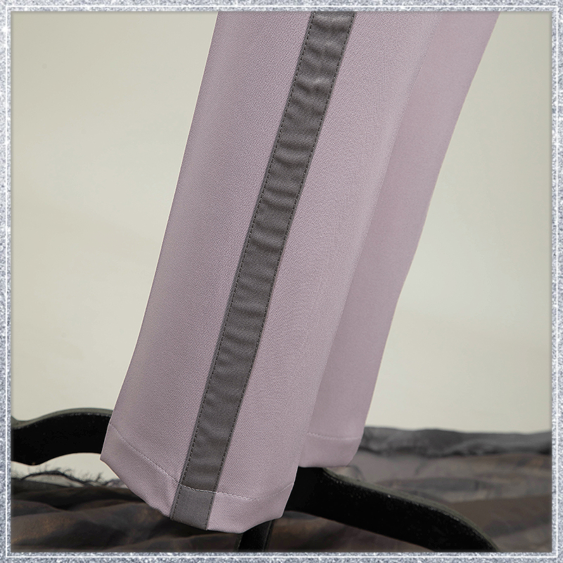 ポリコットンで製作しています。平織の生地にストレッチ性を持たせた素材で、快適な着心地と動きやすさを実現します。真っ直ぐなシルエットで、脚長効果を発揮しています。