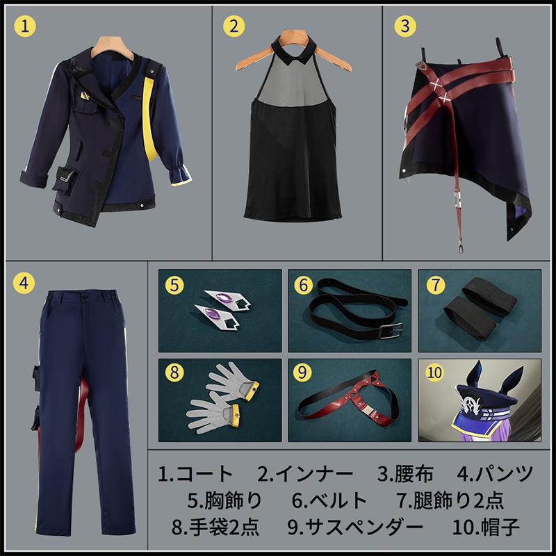 コート、インナー、パンツ、腰布、帽子、手袋2点、飾り物(胸飾り2点、ベルト、サスペンダー、腿飾り2点)