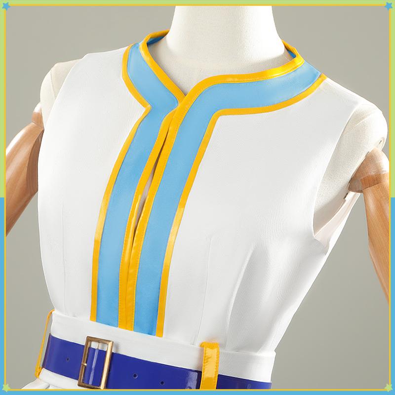 マットサテンで製作しています。スリープレスのカットはシルエットを引き締め、他のアイテムの組み合わせでコスプレの完成度を高めます。