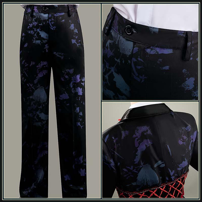 マットサテンで製作しています。花柄プリントが施されたスリムフィットパンツで、神秘的なゴシックロマンティックを体現しています。