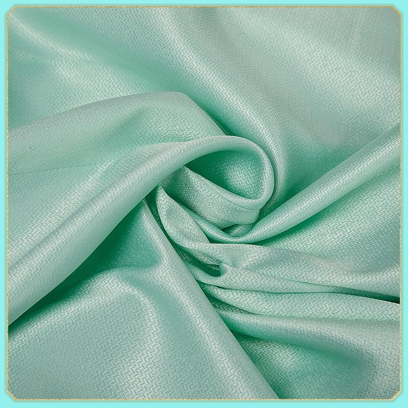 ポリコットン+リップル生地で製作しています。水色+グリーン+白の三色で組み合わせて、両側に金色のラインが飾っており、とてもファンッションです。