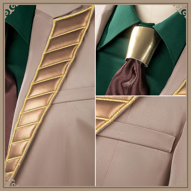 コート、シャツ、パンツ、飾り物(胸飾り、ネクタイ)