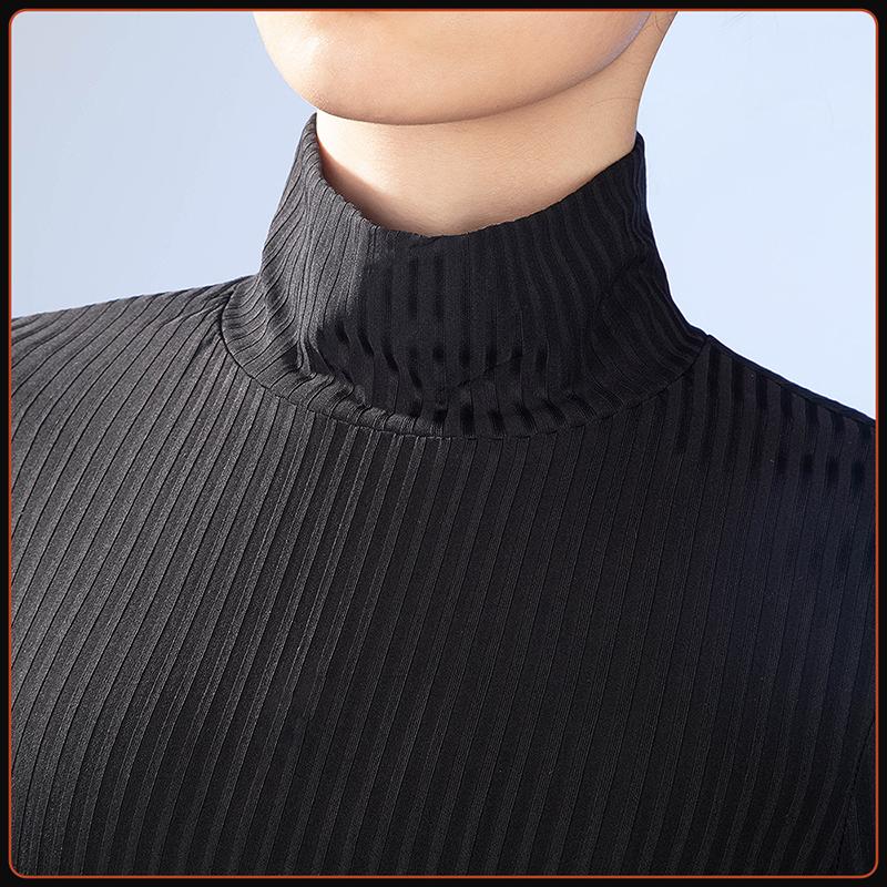 ニット生地で製作しています。黒を基調をとして、着心地がとてもよくて普段にも着られます。