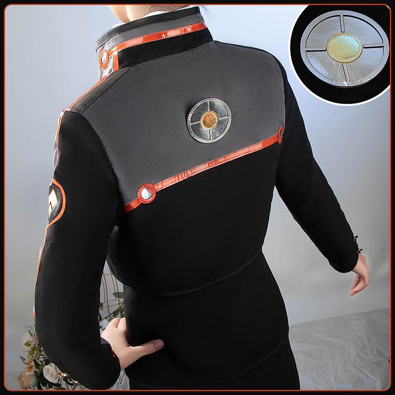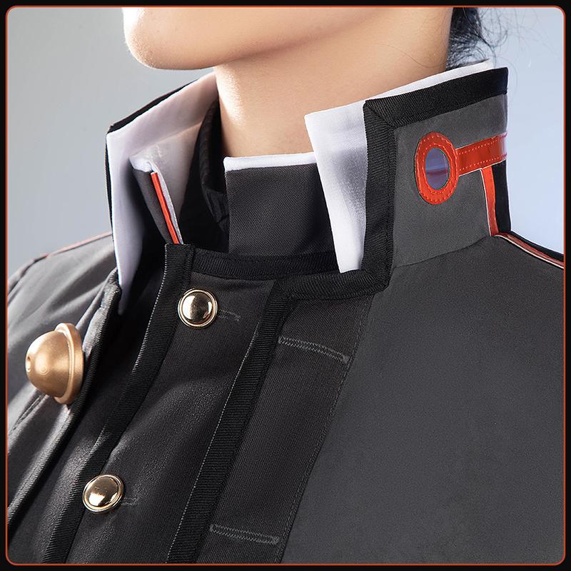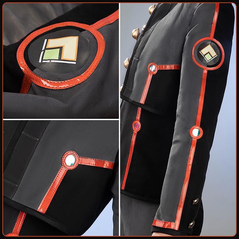 スエード生地で製作しています。ダークグレーと黒いを基調として、プロントに3dボタンが飾って、袖に原作に忠実な柄がプリントされて、再現度が高いです。