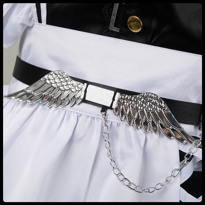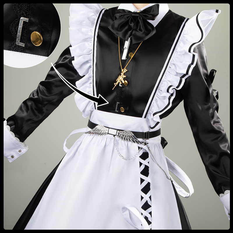 上着、スカート、エプロン、手袋2点、靴下2点、飾り物(リボン、ネックレス2点、腰飾り2点、カチューシャ2点)