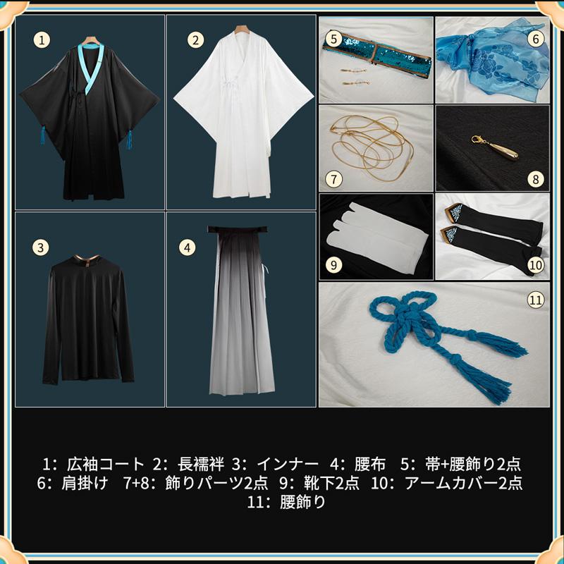 広袖コート、長襦袢、インナ一、肩掛け、腰布、マームカバー、靴下2点、飾り物(帯+腰飾り2点、ベルト、飾りパーツ2点、腰飾り)