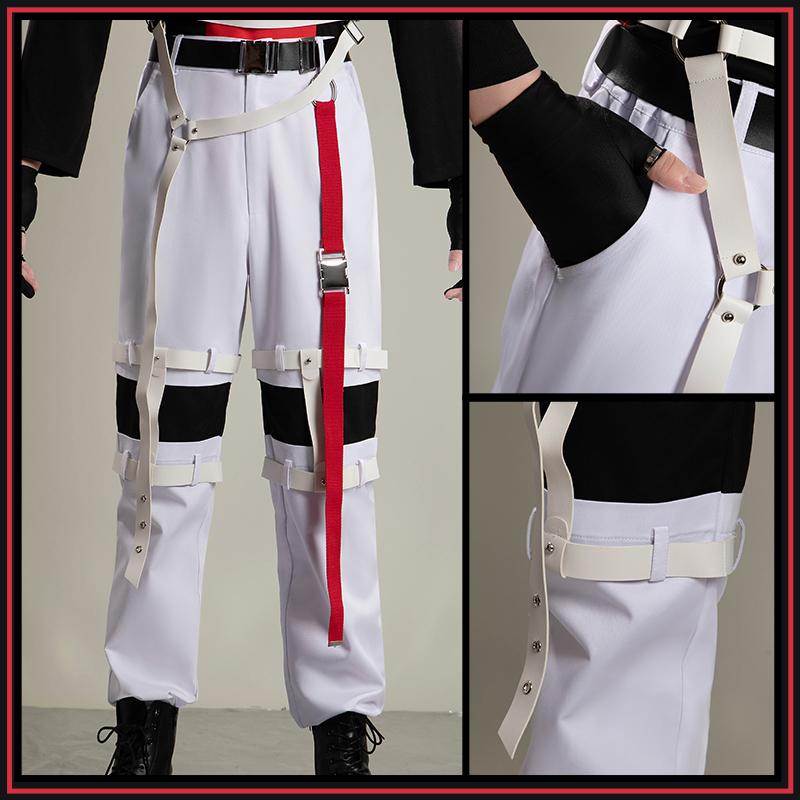 デニム生地で製作しています。クールさと機能美が融合したパンツ、動きやすい素材で、コスプレのステージでも日常生活でも、自然にキャラらしさを演出できます。